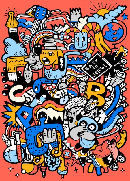 抽象的な背景面白い学校のキャラクターと学校のベクトルバナーデザインに戻るa手描きイラスト いたずら書きのベクターアート素材や画像を多数ご用意 Istock